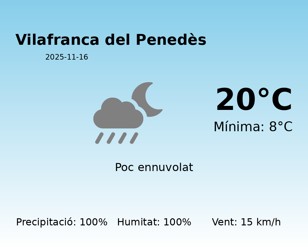 Predicció del Temps per Vilafranca del Penedès – 16 de Novembre 2025