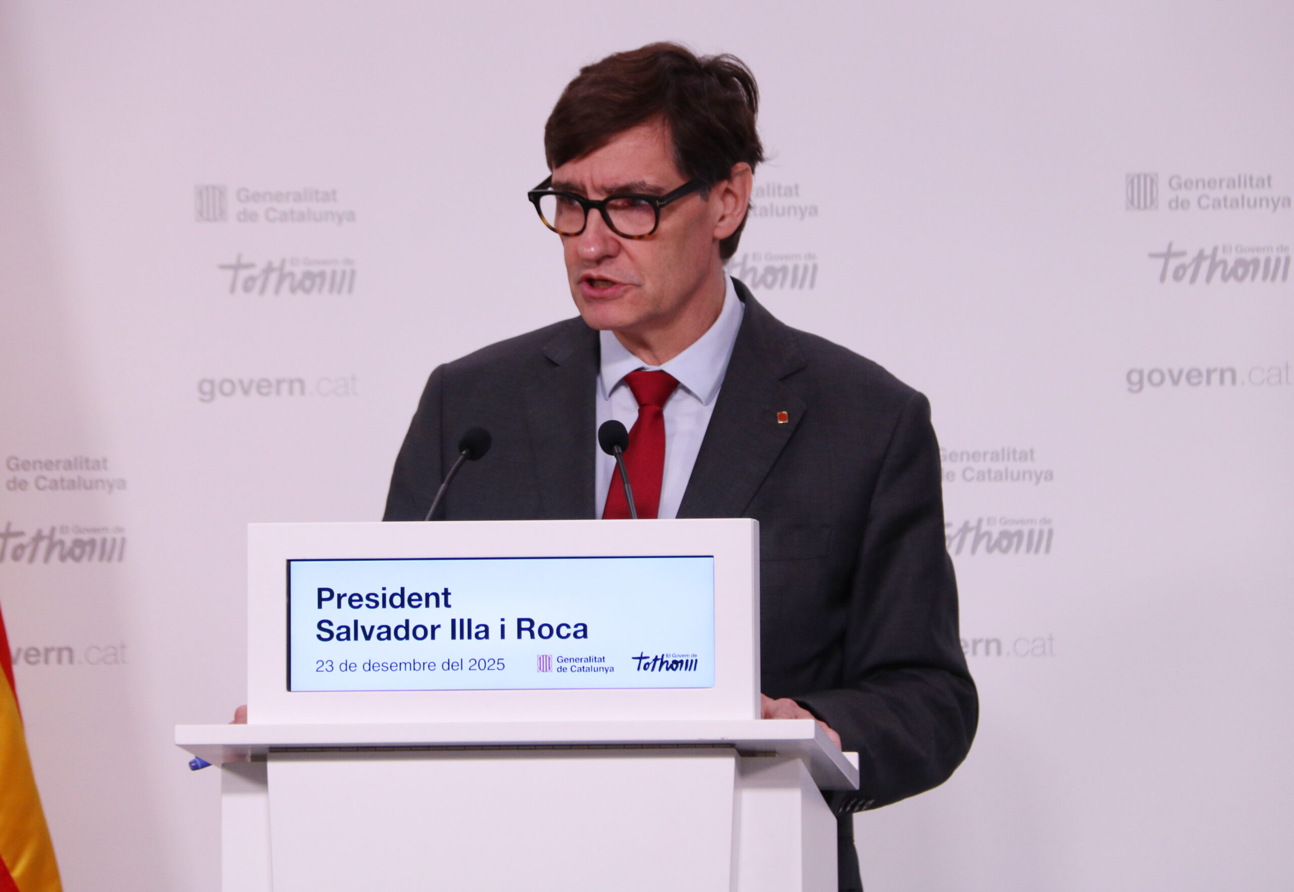 El president ha comparegut davant de la premsa per fer balanç de l’any i ha considerat que aquest 2025 ha estat “un bon any” per a Catalunya. “Sóc perfectament conscient dels problemes que tenim, de la tasca que queda per fer”, ha indicat, però malgrat tot creu que “ha estat un any positiu per al país”. “Volen un pronòstic? Serà millor el 2026 que el 2025”, s’ha atrevit.