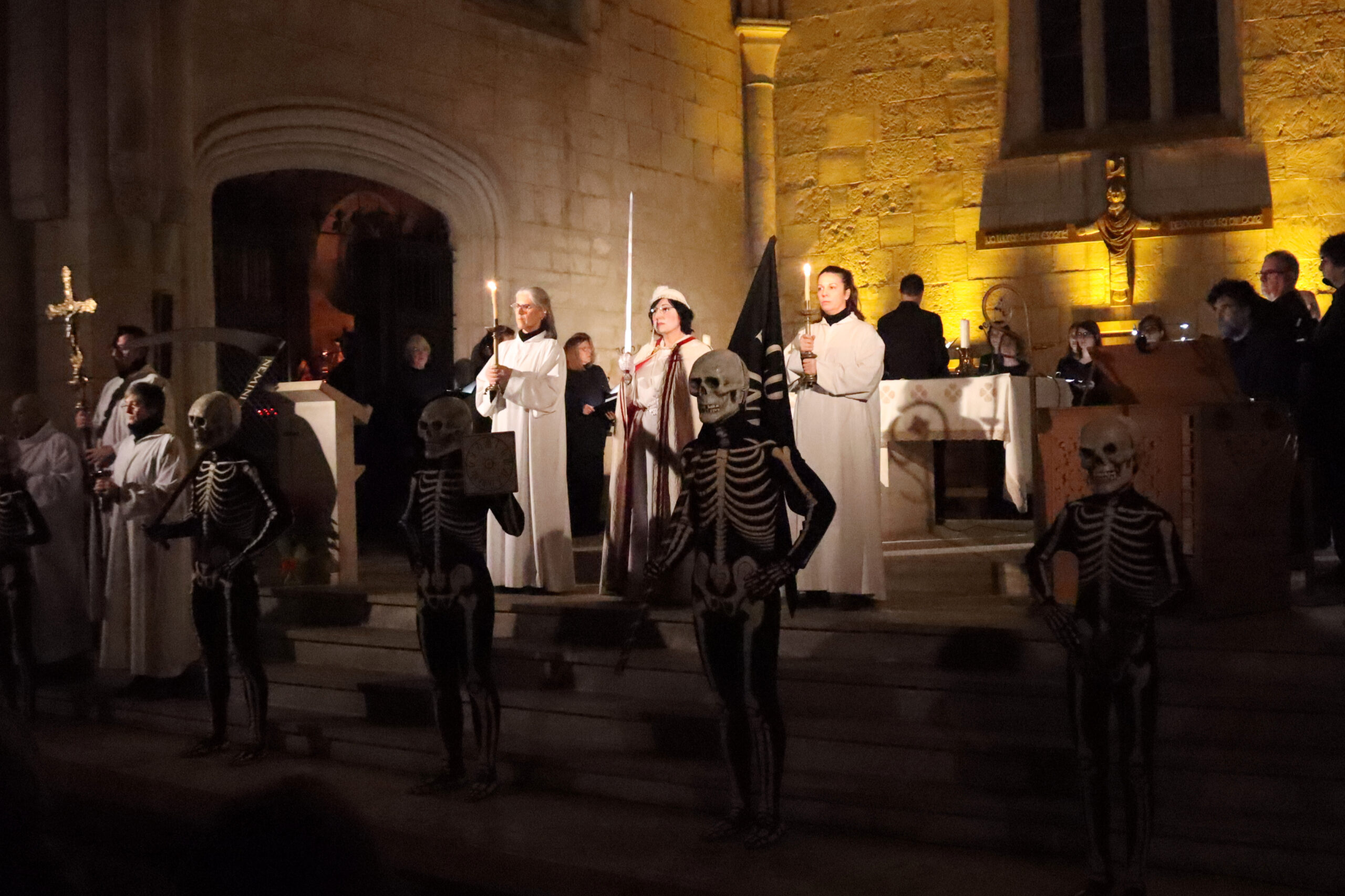 L’acte ha arrencat amb l’entrada en silenci a la nau de l’església de Sant Francesc dels cinc esquelets emblemàtics de la Dansa de la Mort, al so del timbal. Per a poder conjugar les dues tradicions, el director artístic, Oriol Pérez Treviño, explica que ha partit del format de la consueta, el conjunt de celebracions que es duien a terme a l’edat mitjana en finalitzar els oficis dels Laudes i Vespres. S’ha construït a partir de diferents números corals i instrumentals del Cant de la Sibil·la, de la Dansa de la Mort i de petits elements escènics.